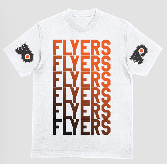 Flyers fade left to right with logo on sleeve short sleeve t-shirt