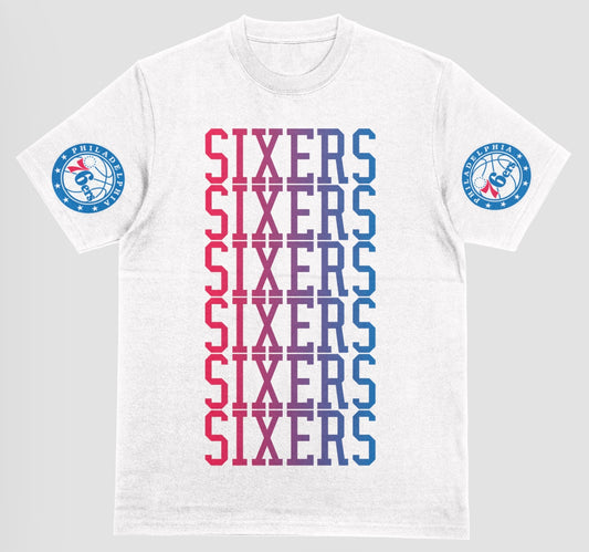 Sixers fade left to right with logo on sleeve short sleeve t-shirt